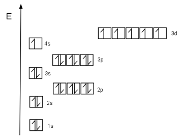 You’ve probably noticed—the 4s level is missing an electron! According to the rules we’ve seen, the last electron that’s now in the 3d orbital should actually be in the 4s, with its spin pointing down (or more "squeezed in").